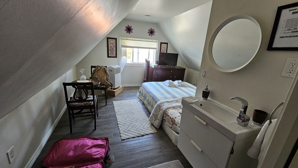 I can understand the negative reactions here, BUT... this is not a luxury hotel. It is a nice little family home where you can feel very comfortable. There are pictures of the family everywhere and you feel like you are staying with friends. It's not all super modern and great, but the beds are neat (we slept very well), the bathroom is more than adequate, everything is very clean, and you can use the kitchen and refrigerator. The house has a small porch where we sat in the evening and had our dinner. There is free parking right next to the house, which is very valuable in Niagara Falls, as parking spaces there cost a fortune. And you can walk to the falls (about 20 minutes). Questions to the owners were answered by email within a few minutes. And they were very friendly and accommodating. The Deluxe Loft (the name is to be taken with a grain of salt) had a small but neat bathroom. The bed wasn't huge, but it was big enough for both of us, and now there's also air conditioning and a private refrigerator. However, the stairs up there are very steep and not easy for everyone to climb. But we loved it and felt very comfortable. In our opinion, the price-performance ratio is excellent!